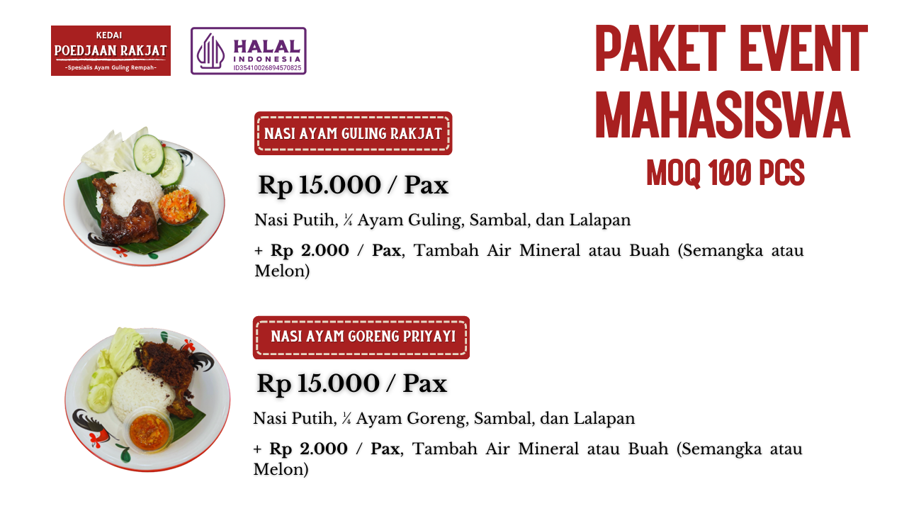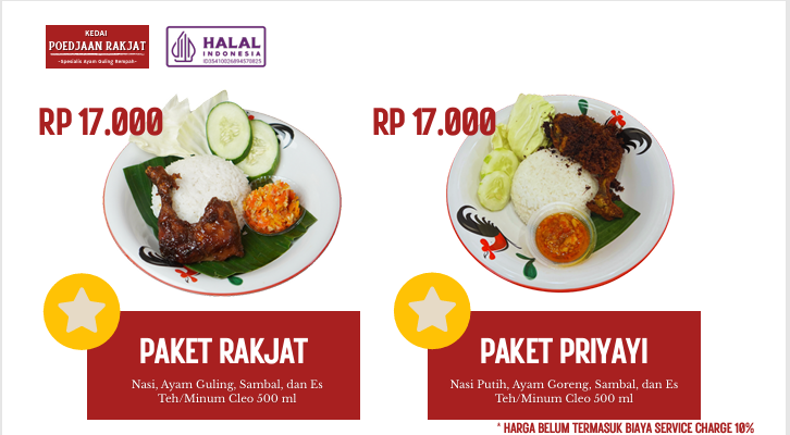 Paket Rakjat Ayam Guling dan Paket Priyayi Ayam Goreng